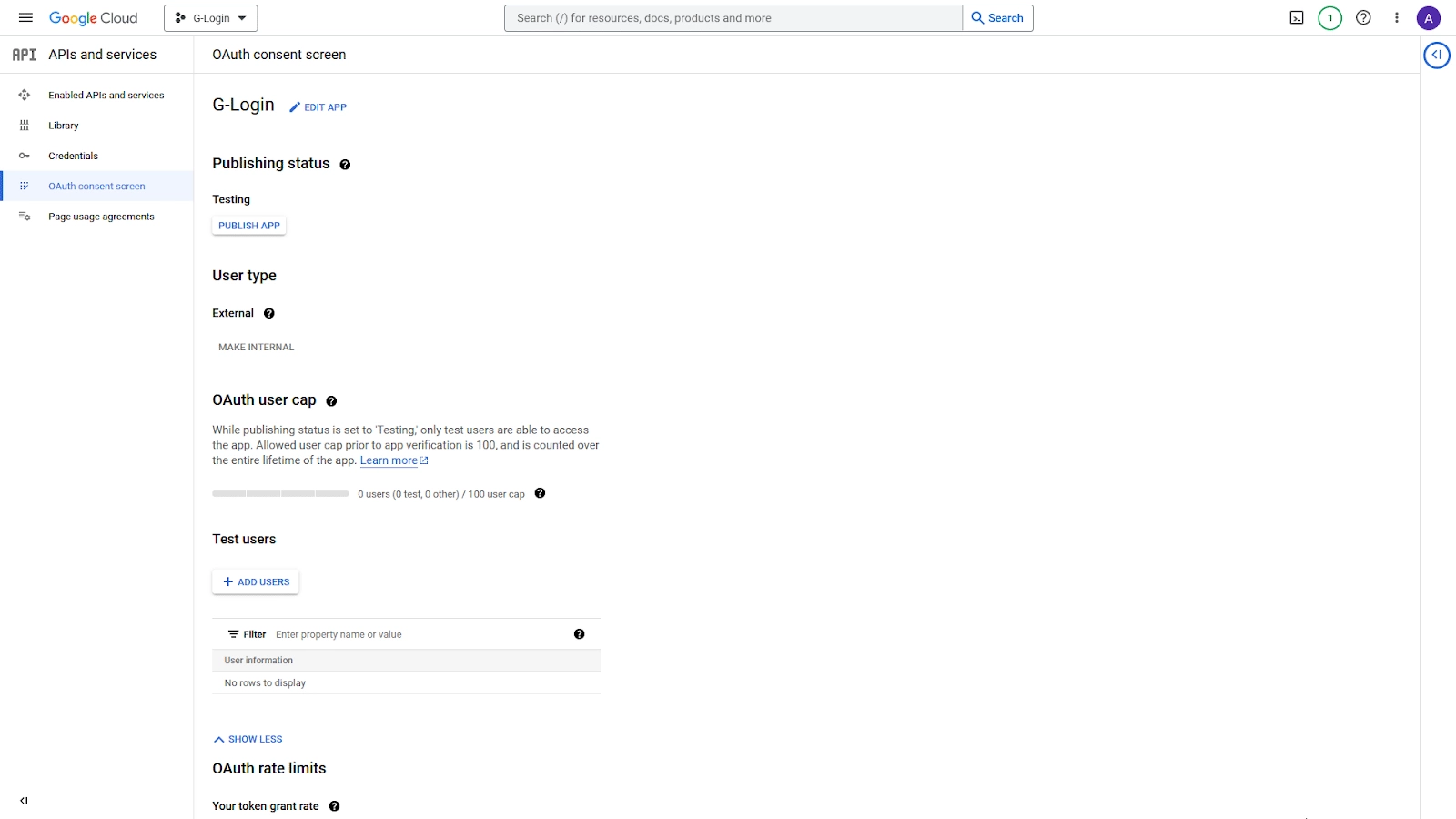 4. Then click on the OAuth consent screen on the left sidebar.