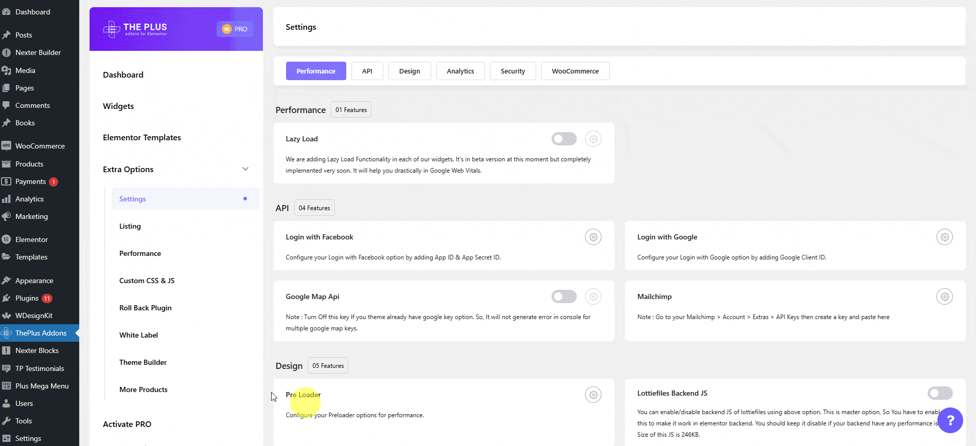 • The Plus Addons → Extra Options â†’ Settings