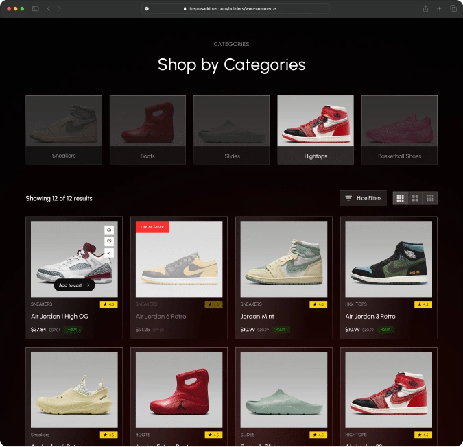 Easily filter your WooCommerce Products based on category with just one click using our Product Listing widgets. Simplify navigation and improve user experience.
