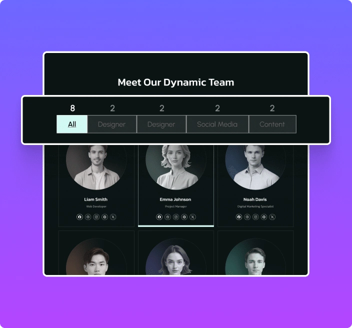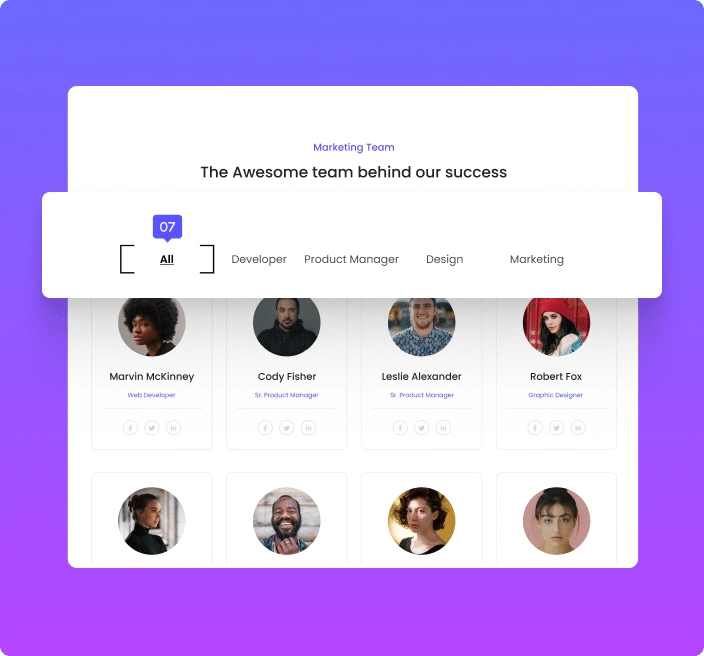 Live Demos of Elementor Team Members Filter